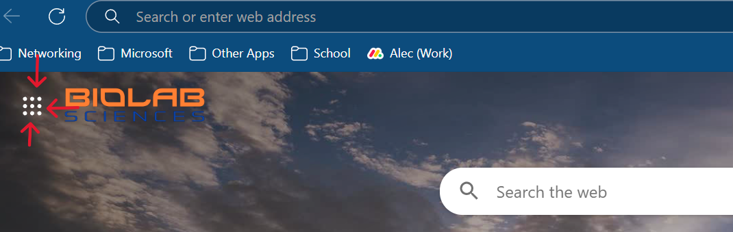 Step 2: Open Microsoft Edge, and select the 9 dots in the top right (must be new tab)