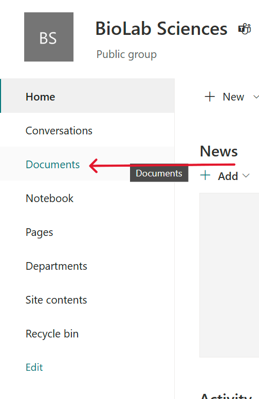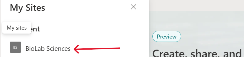 Step 4: Select Sites or globe icon on left task bar then select "Biolab Sciences"